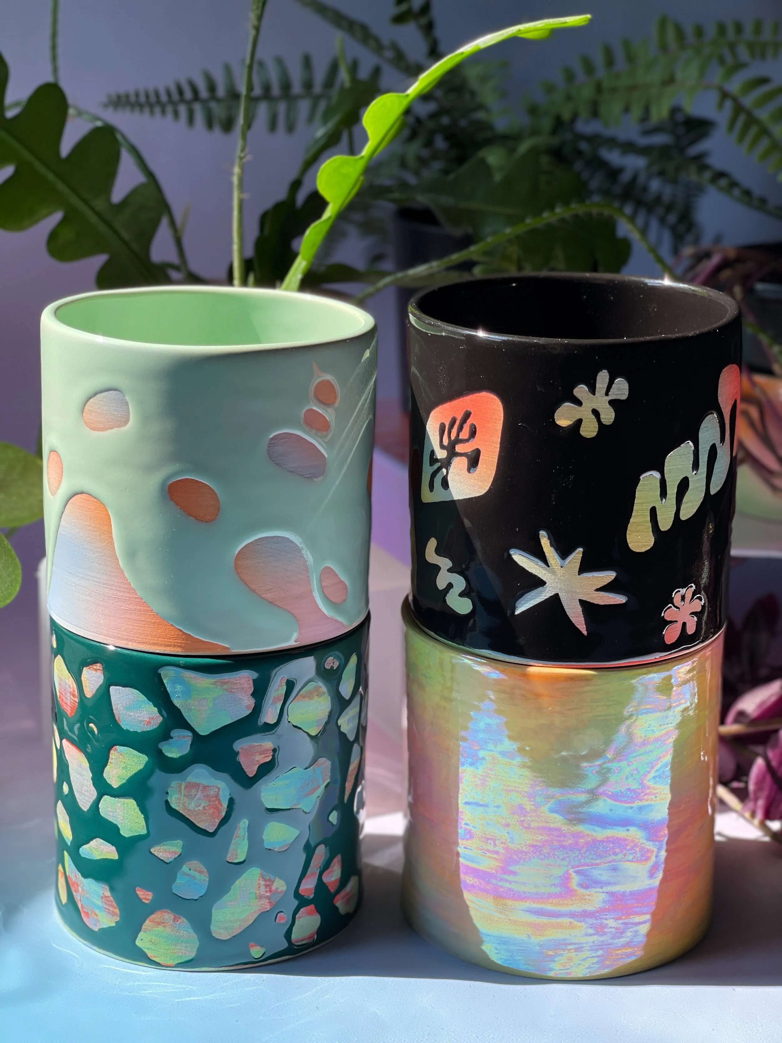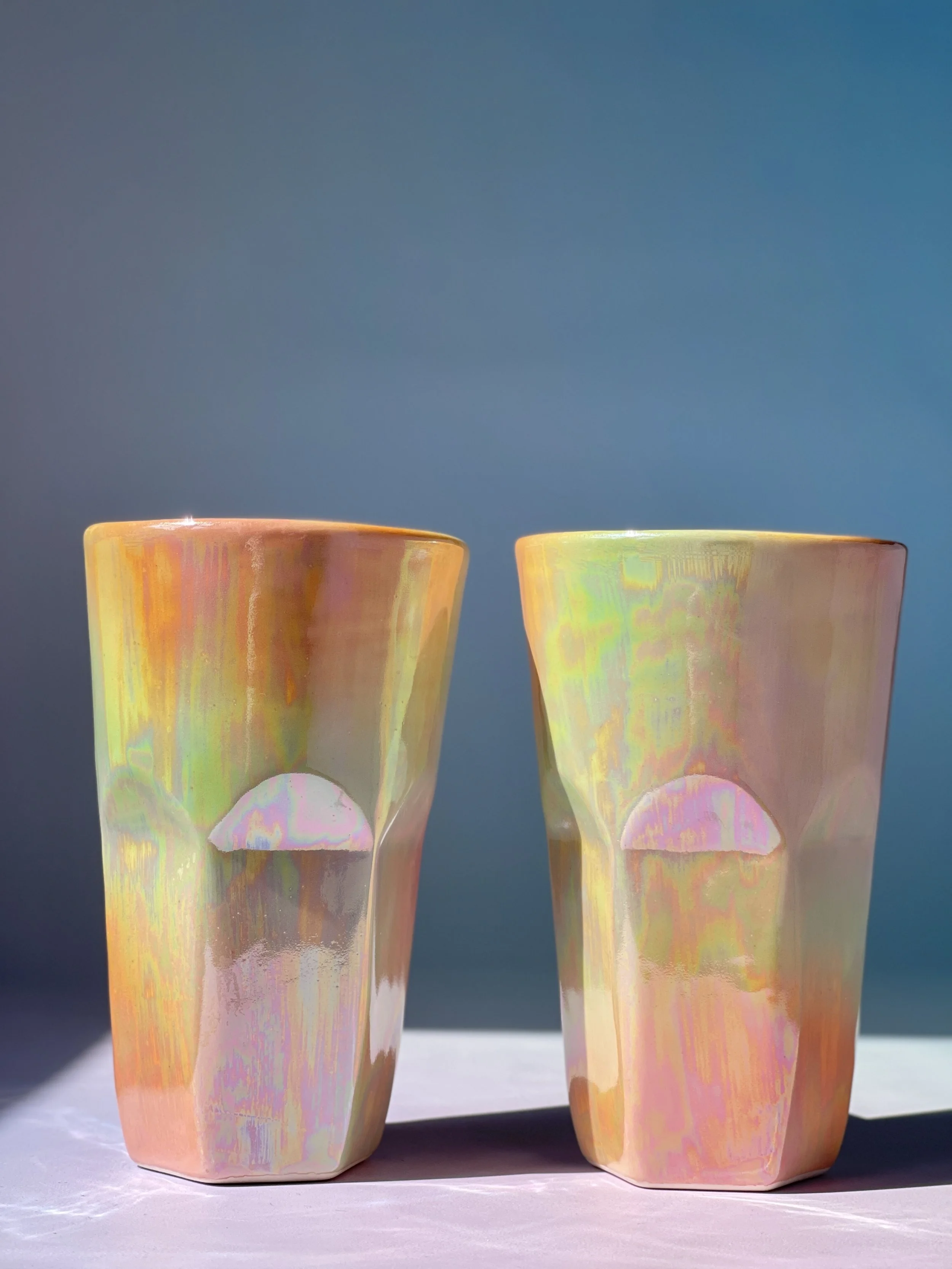 Hand wash only. Wash matte and iridescent surfaces gently.